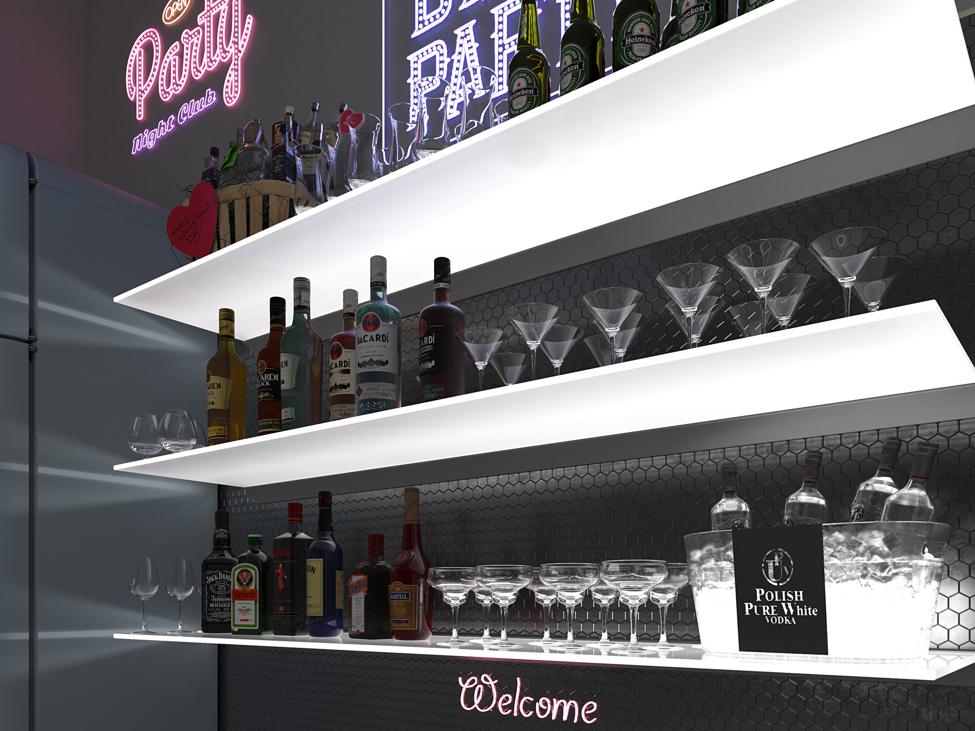 – Podświetlenie szklanej półki o grubości 8 mm