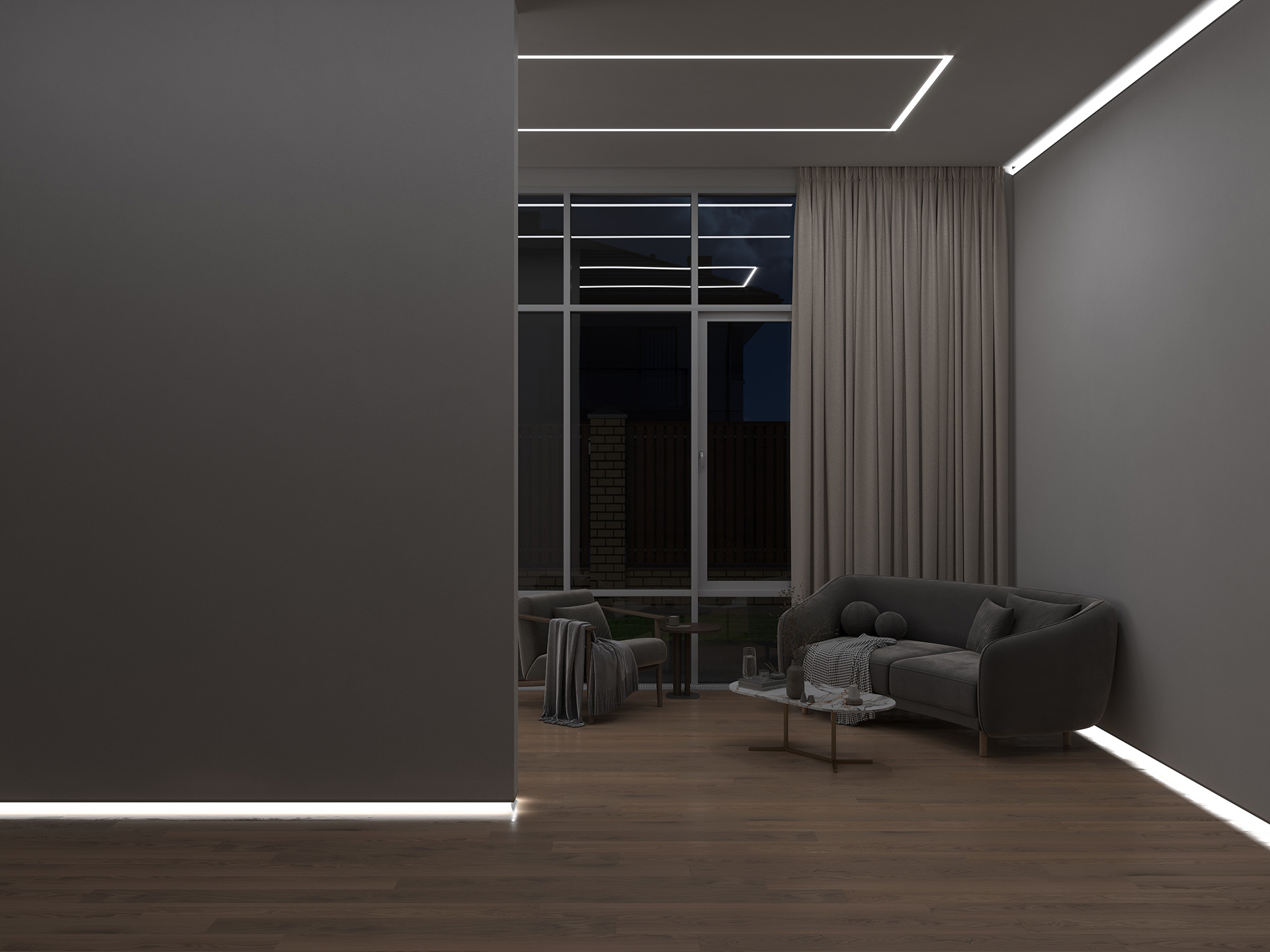 TECH Light P26-3 to architektoniczny profil LED wykonany z wysokiej jakości aluminium, przeznaczony do tworzenia eleganckich ciągów świetlnych wzdłuż ścian korytaży. Ten wszechstronny profil o wymiarach 20×90 mm idealnie sprawdza się w projektach wymagających subtelnego oświetlenia ambientowego. W Tech Light projektujemy profile z myślą o funkcjonalności i estetyce, dlatego P26-3 wyposażony jest w praktyczne łapki umożliwiające zaciągnięcie masą szpachlową, co pozwala na dyskretne wtopienie profilu w strukturę ściany.