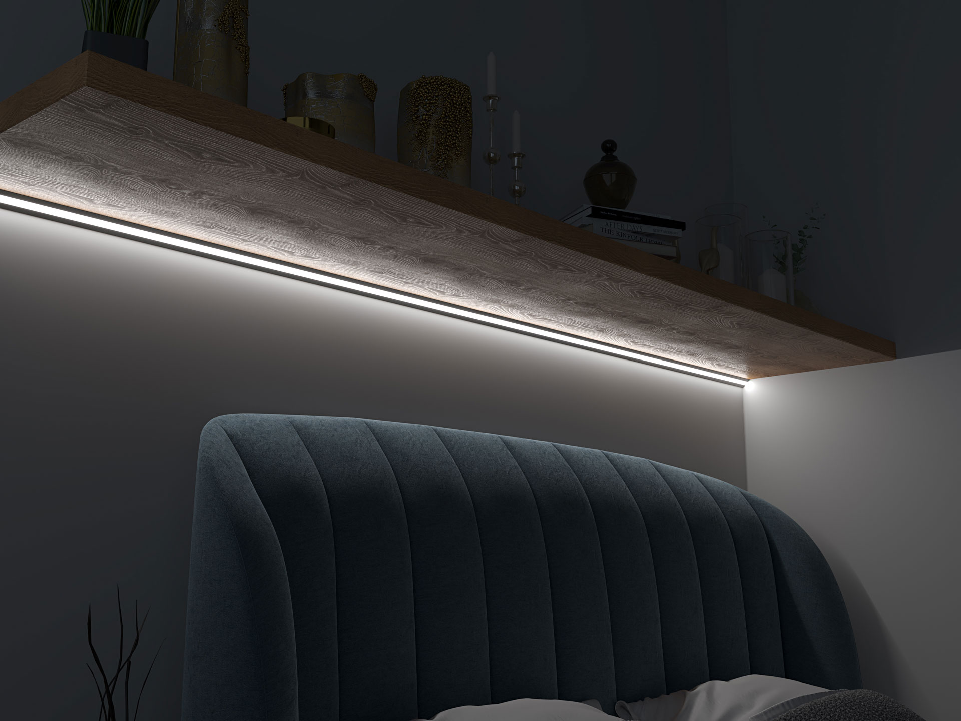 Profil kompatybilny z szeroką gamą osłonek, co umożliwia personalizację efektu świetlnego. Montaż możliwy za pomocą wkrętów meblowych, taśmy dwustronnej lub kleju. Zalecany do taśm LED typu SMD oraz COB.